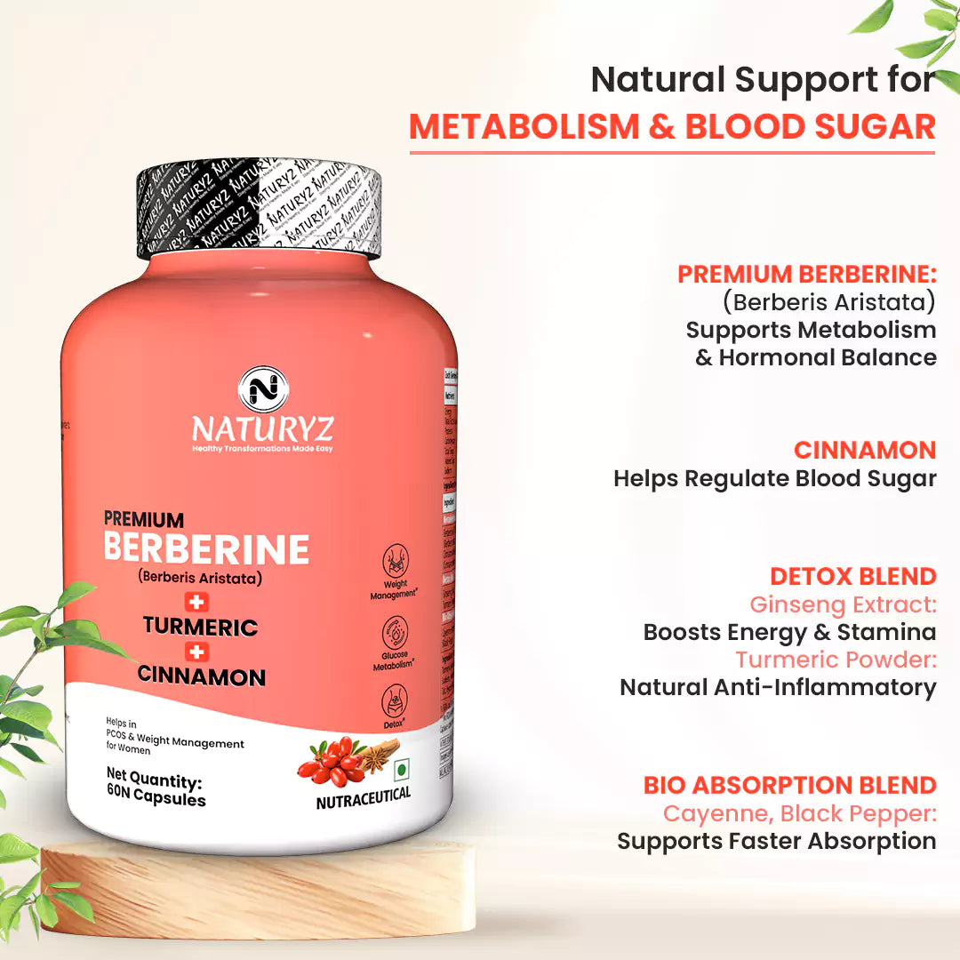 ✅ TRIPLE-ACTION FORMULA FOR PCOS MANAGEMENT & WEIGHT CONTROL: NATURYZ Premium Berberine supplement is a synergistic blend of Berberine, Cinnamon, and Turmeric designed to help balance hormones, improve insulin sensitivity, and support natural fat metabolism.